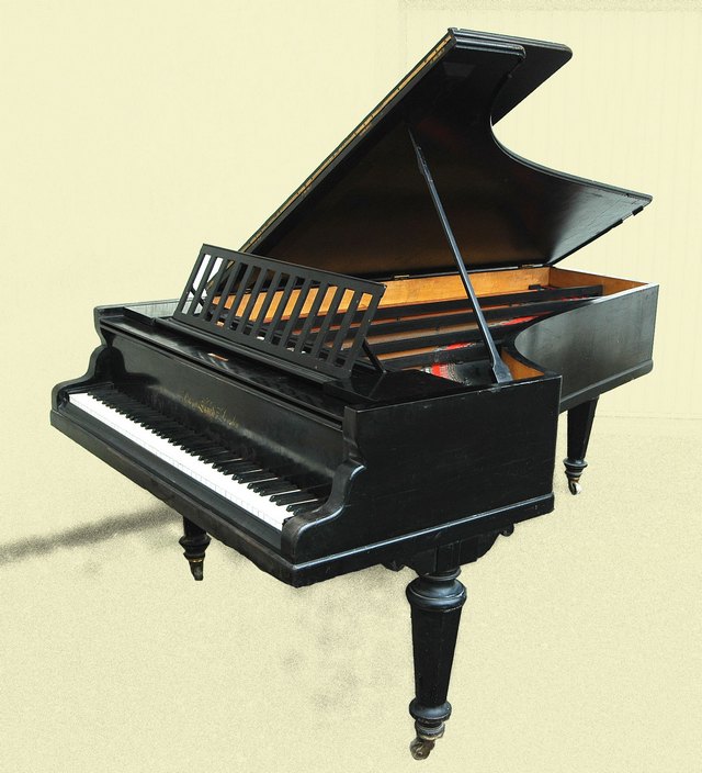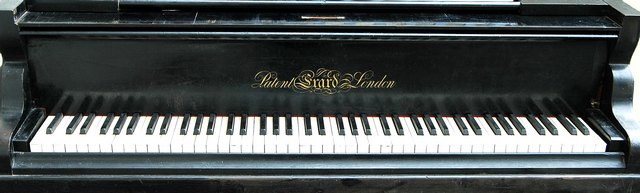 Lock is missing. Two pedals controlling dampers and due corde. The tuning