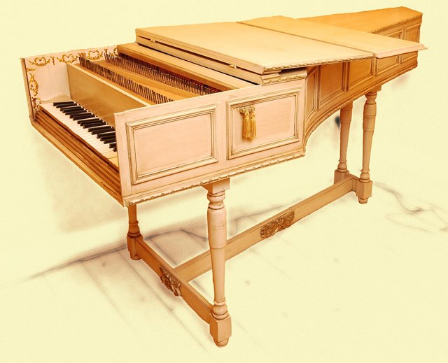 Single manual harpsichord made by an anonymus builder. The case is painted