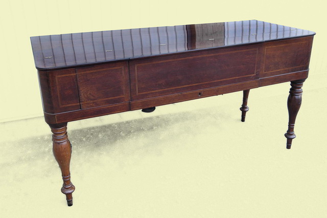 is made in mahogany with inlays. The nameboard is signed with "A.