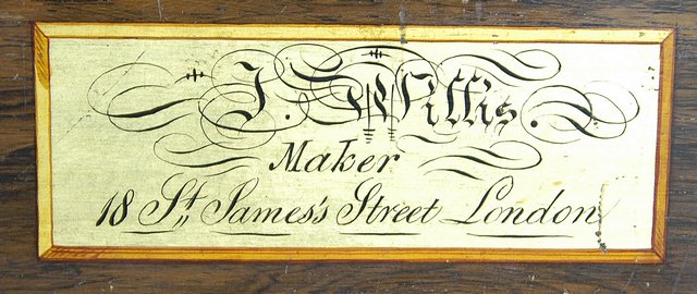 is signed with "I. Willis. Maker. 18 St. James's Street London".